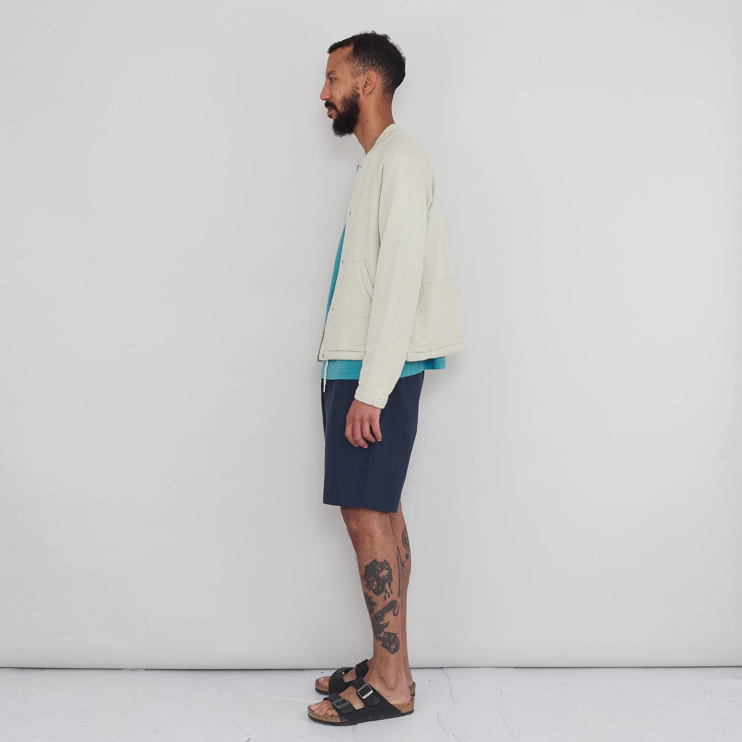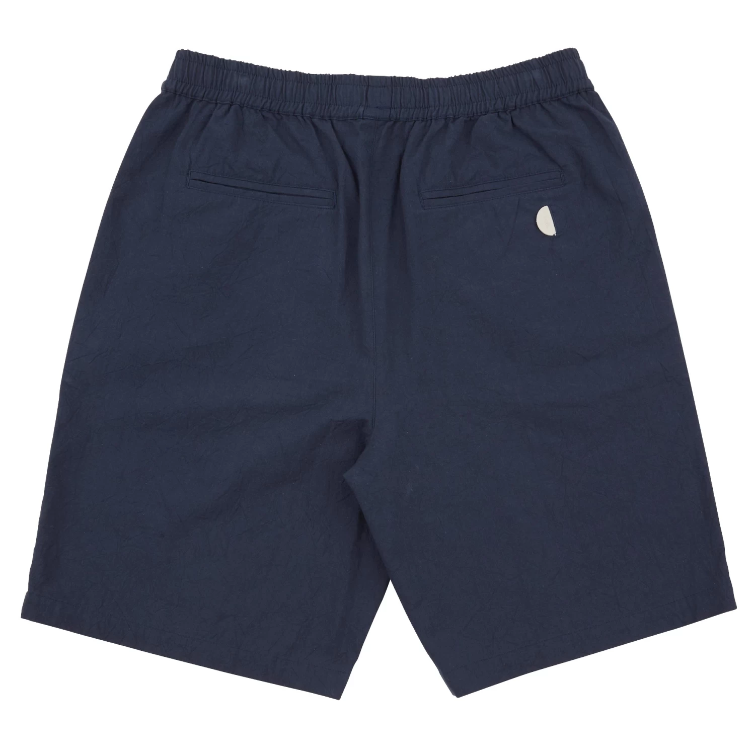 Elasticated waistband in self fabric, with drawcords finishing internally through embroidered eyelets.