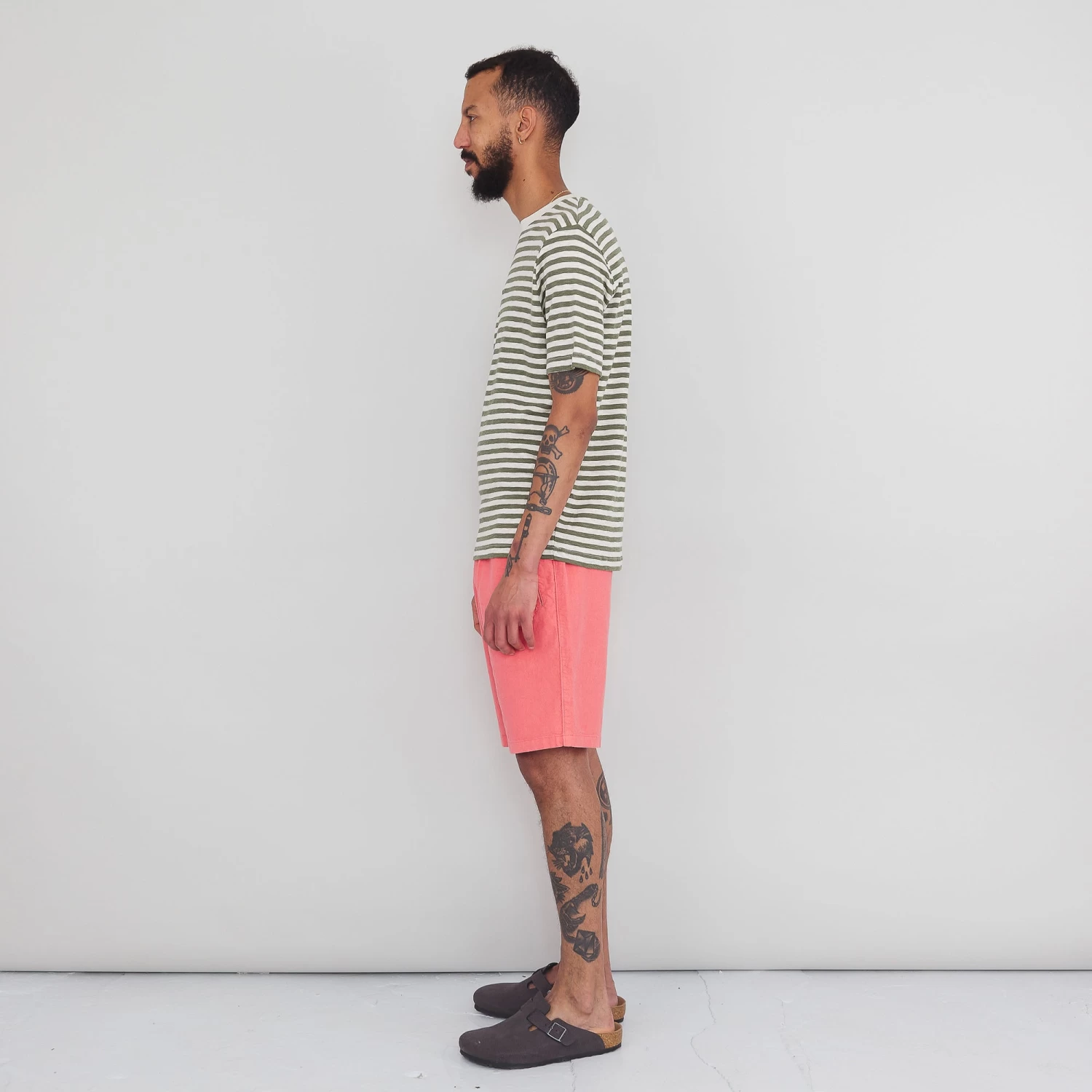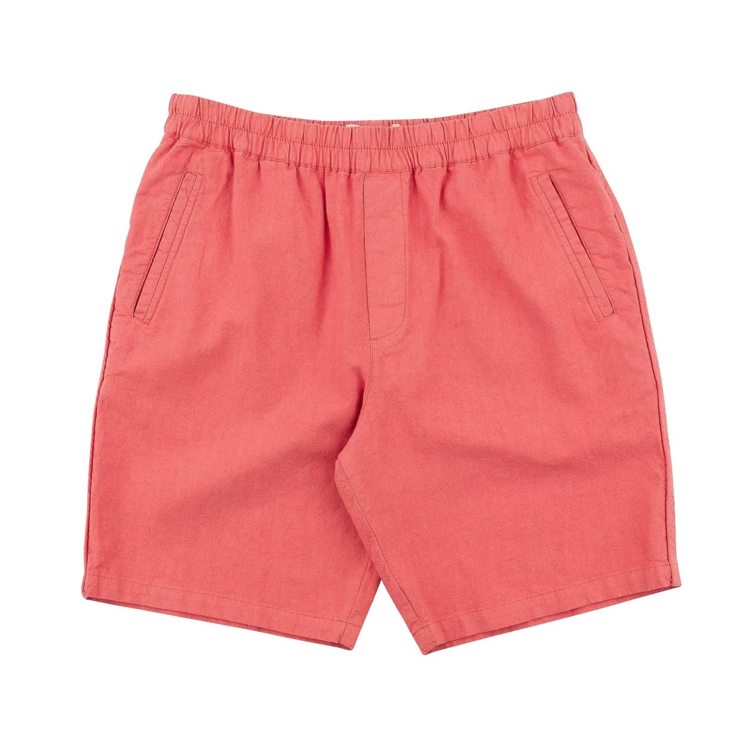 Flat, self fabric piping detail at outer leg seam.