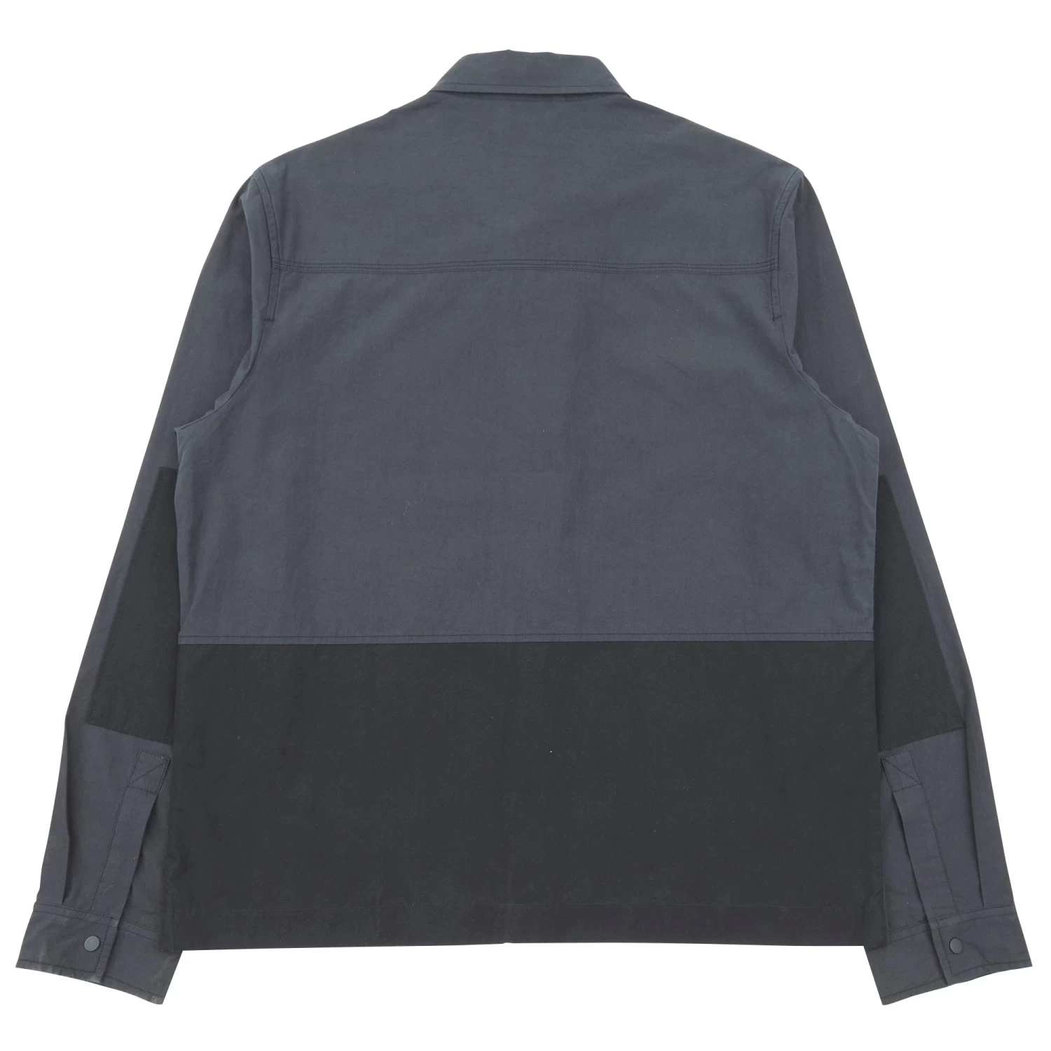 Corozo nut buttons and small flat press studs at collar and cuffs.