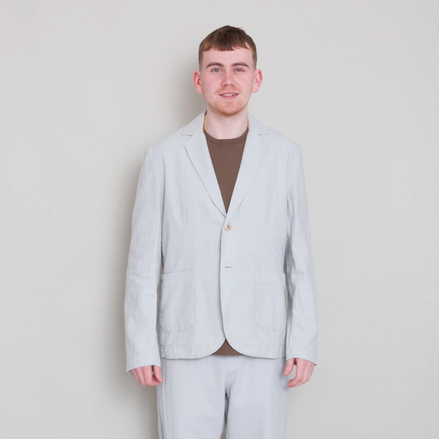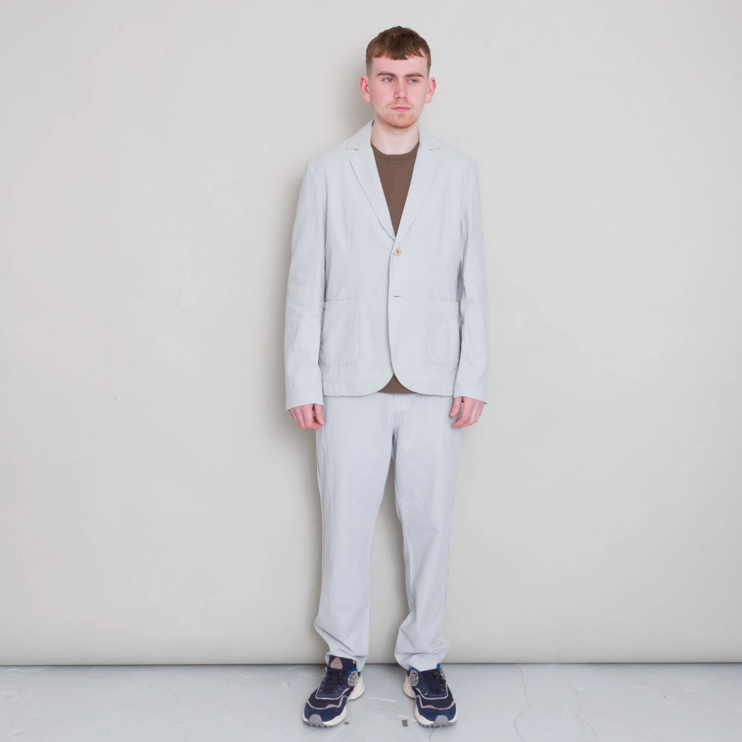 Easy silhouette; single breasted with notch lapels.