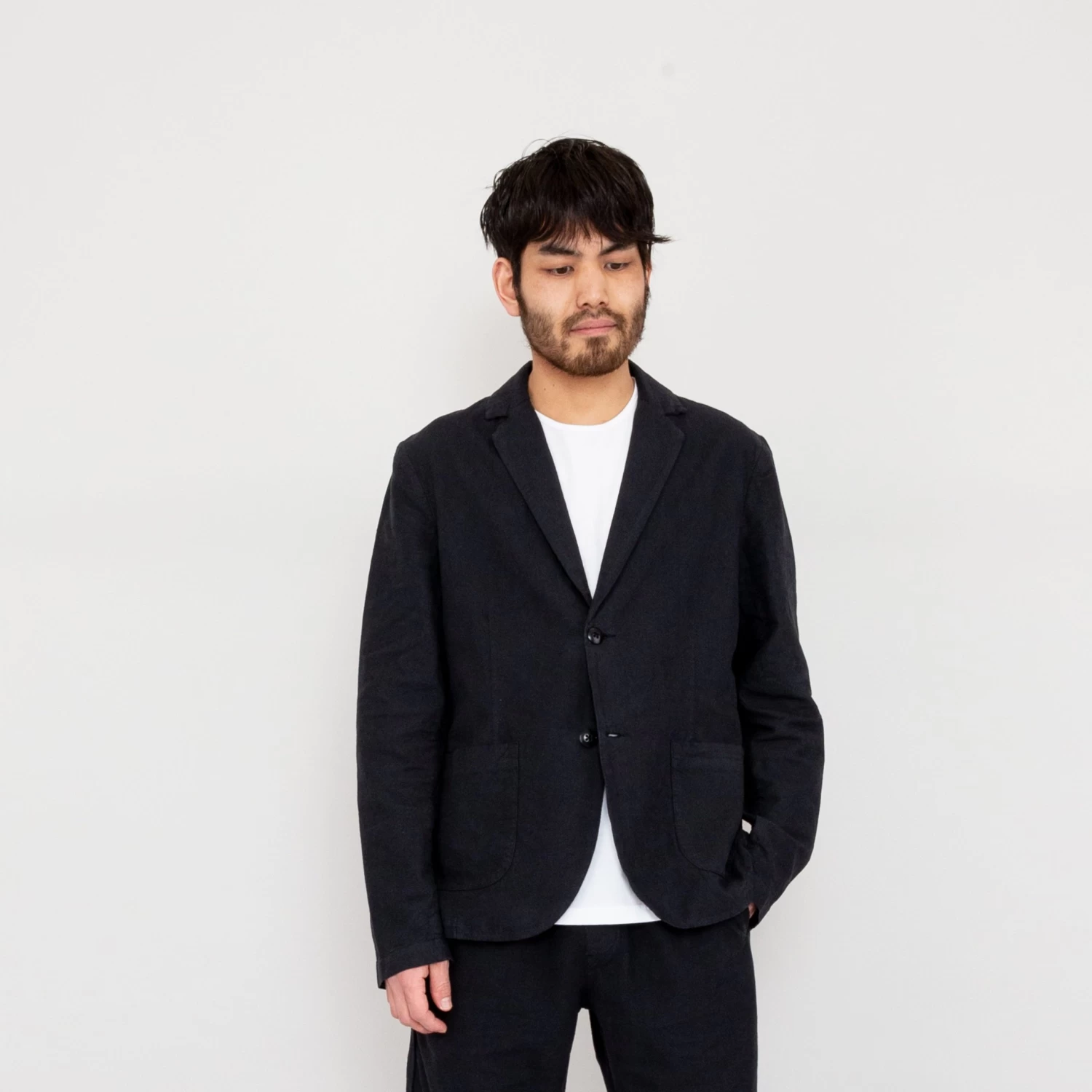 Cotton Linen Blazer – Soft Black