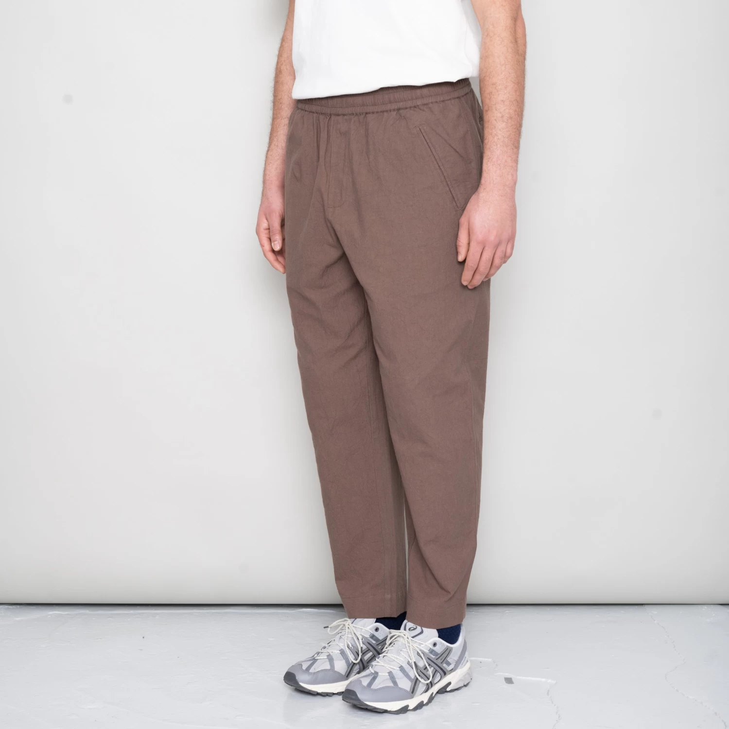 Leg shape as Assembly Pant; wider, looser leg fit with cropped length with pleat detail at front.