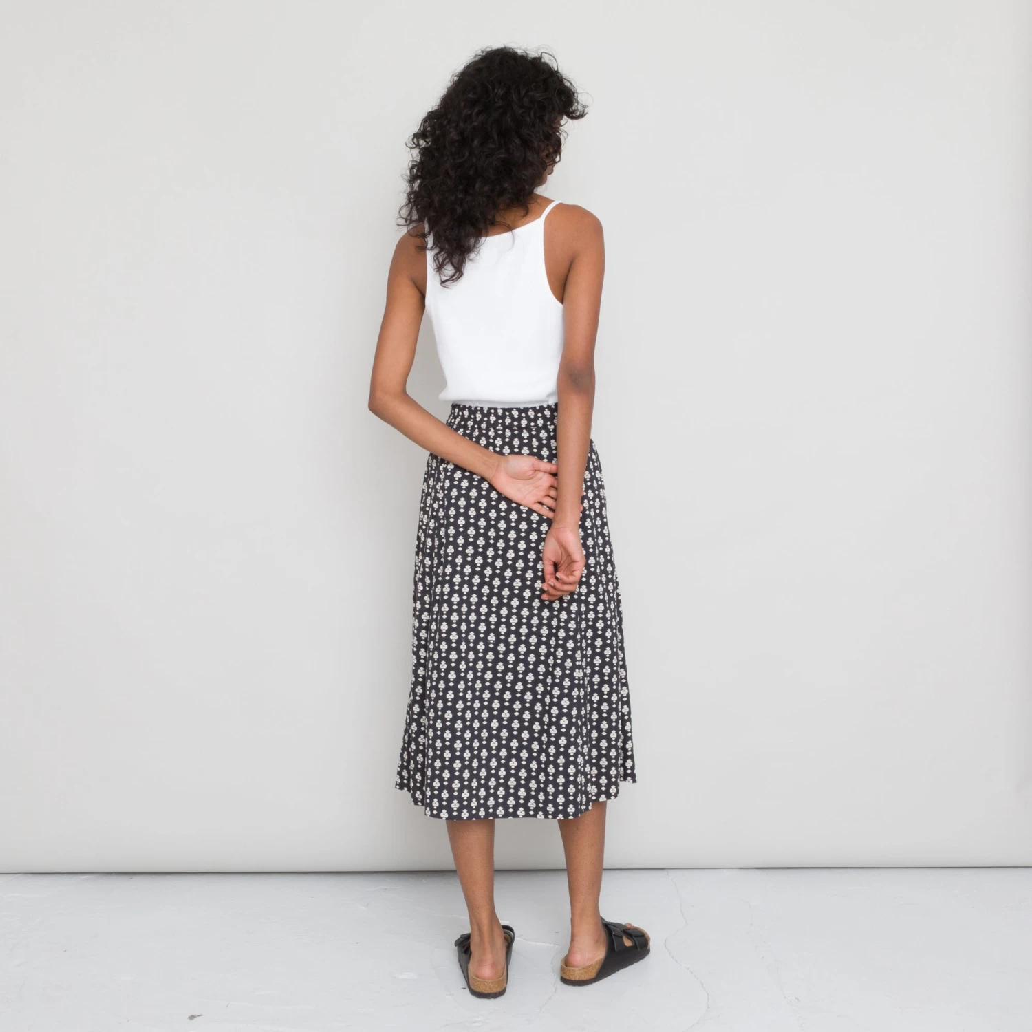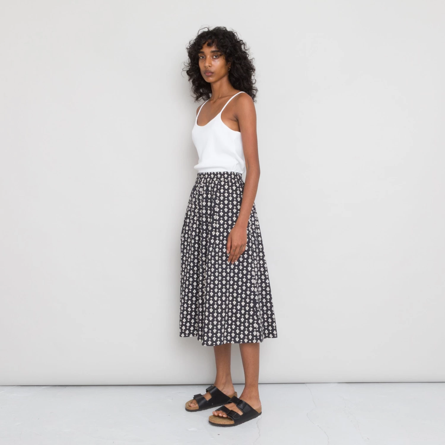 Full mid length skirt with an elasticated waistband.