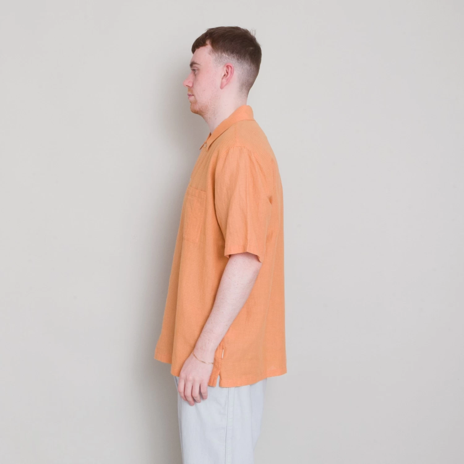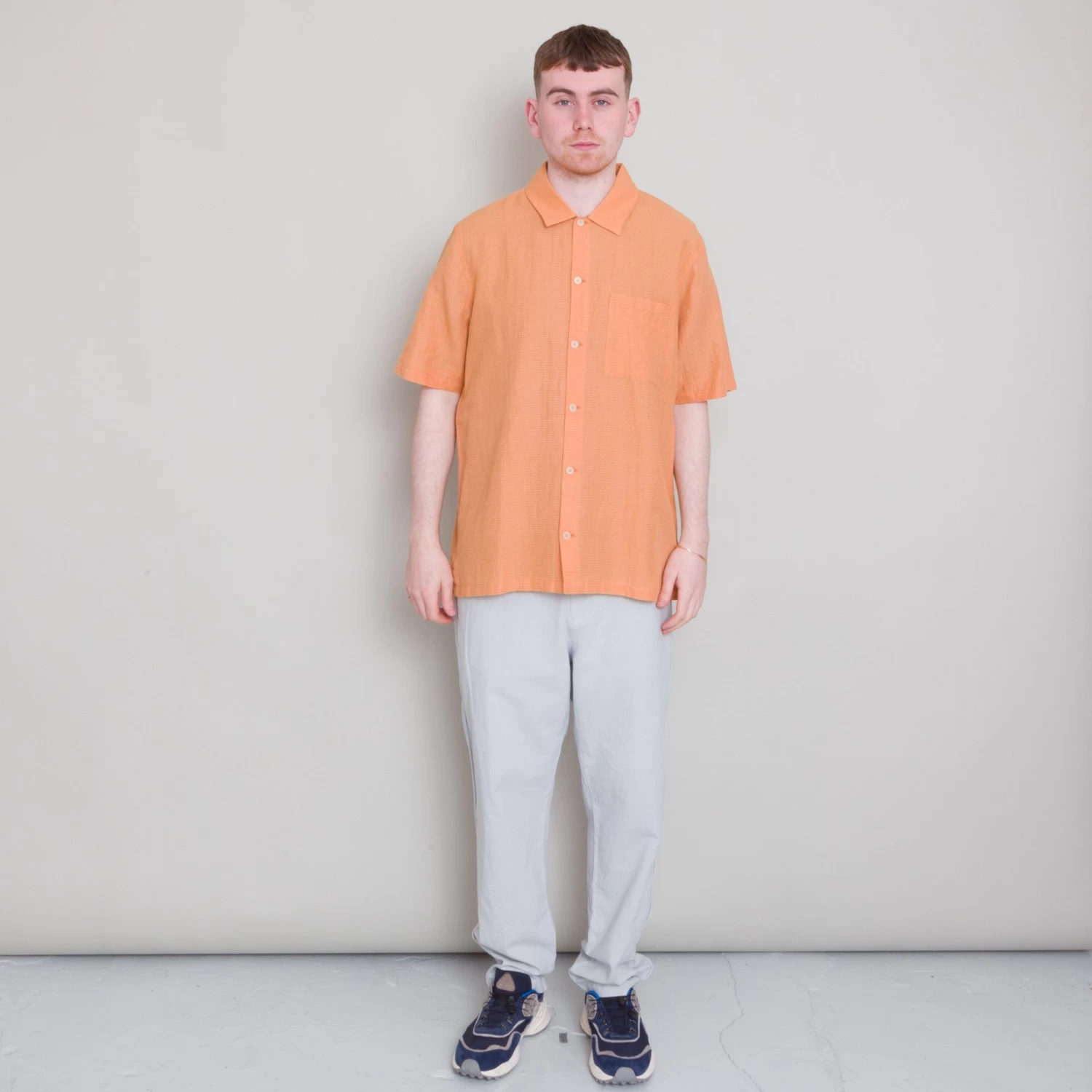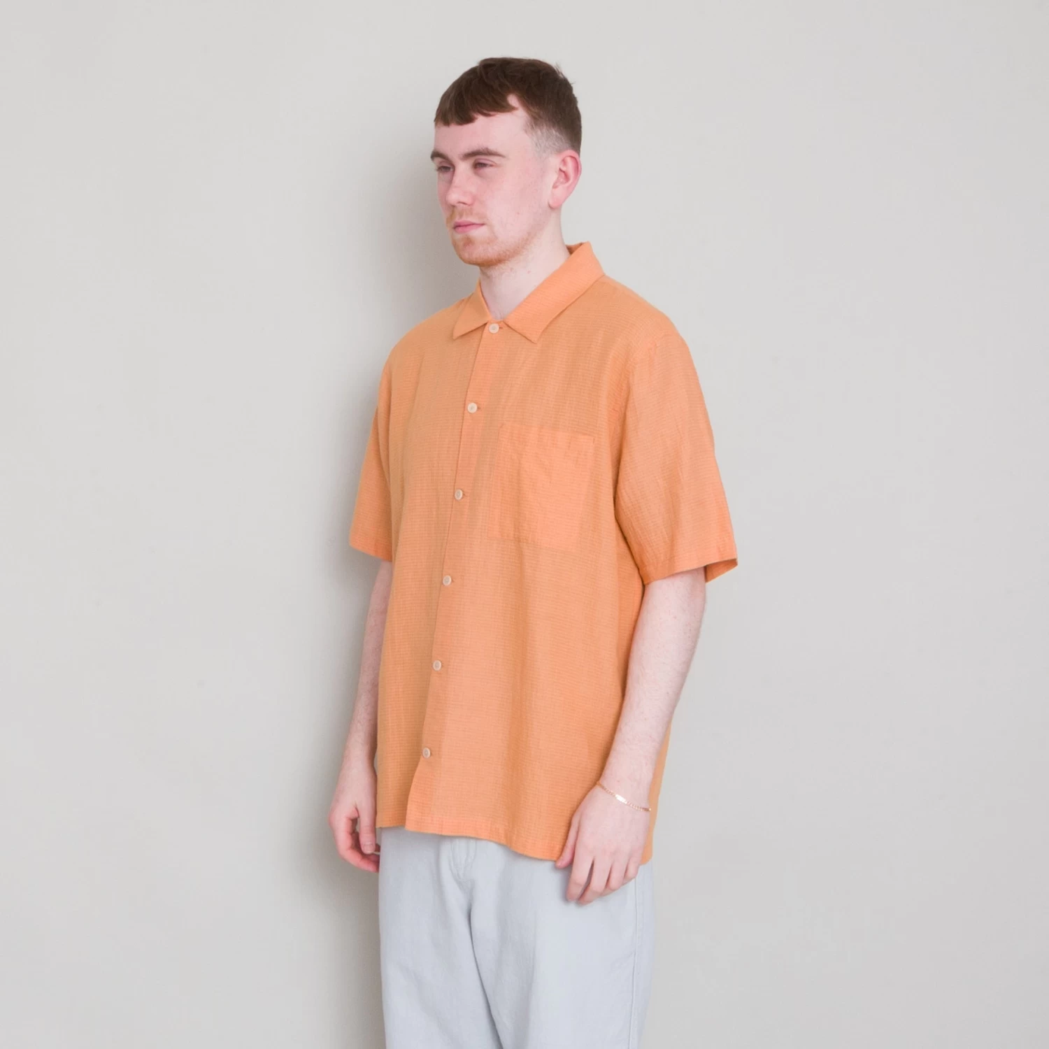 Boxy, relaxed fit short-sleeve shirt with a spread-collar.