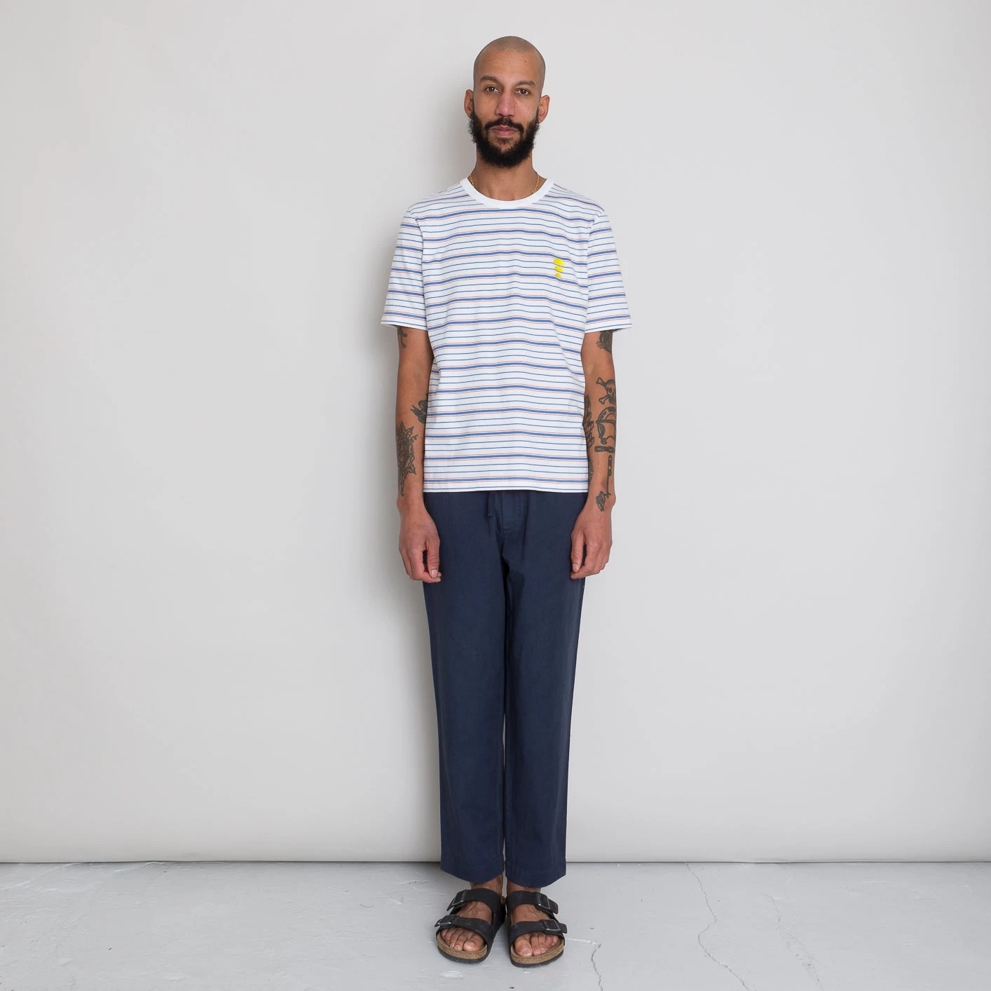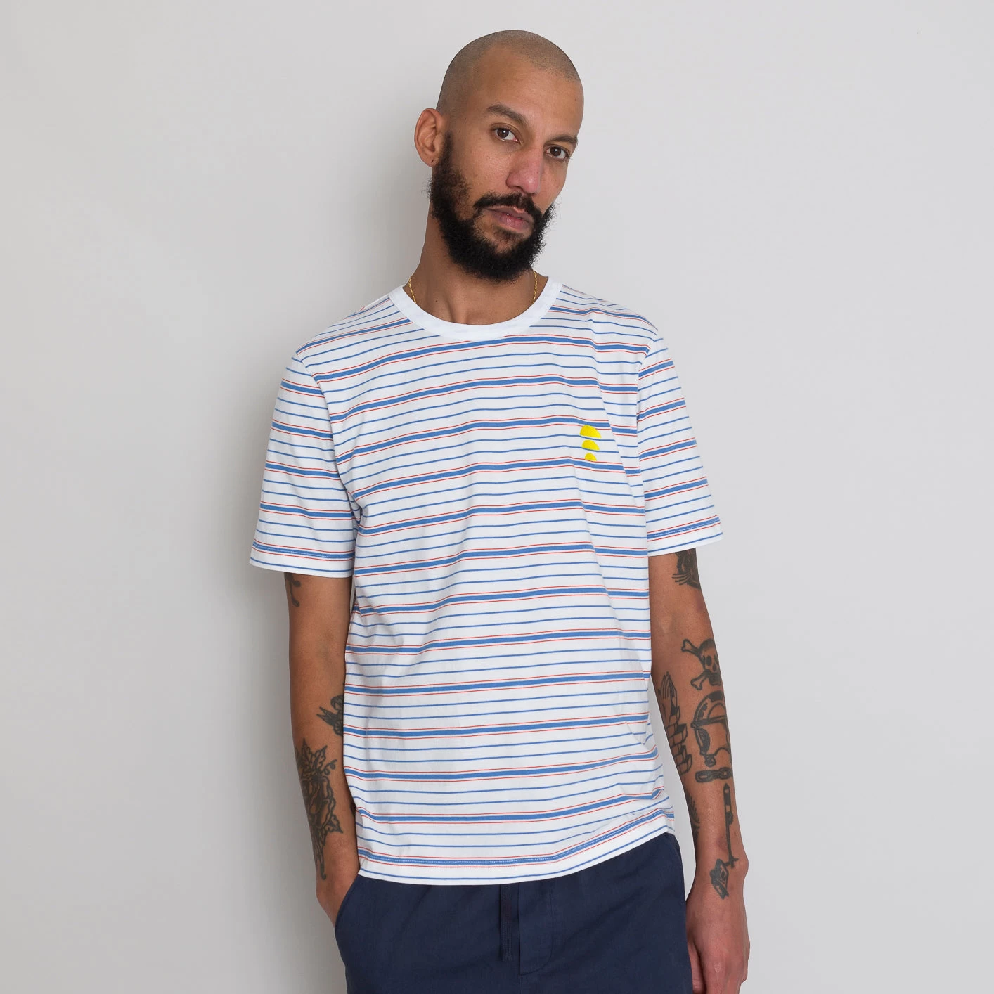 Relaxed fit short sleeve tee block.