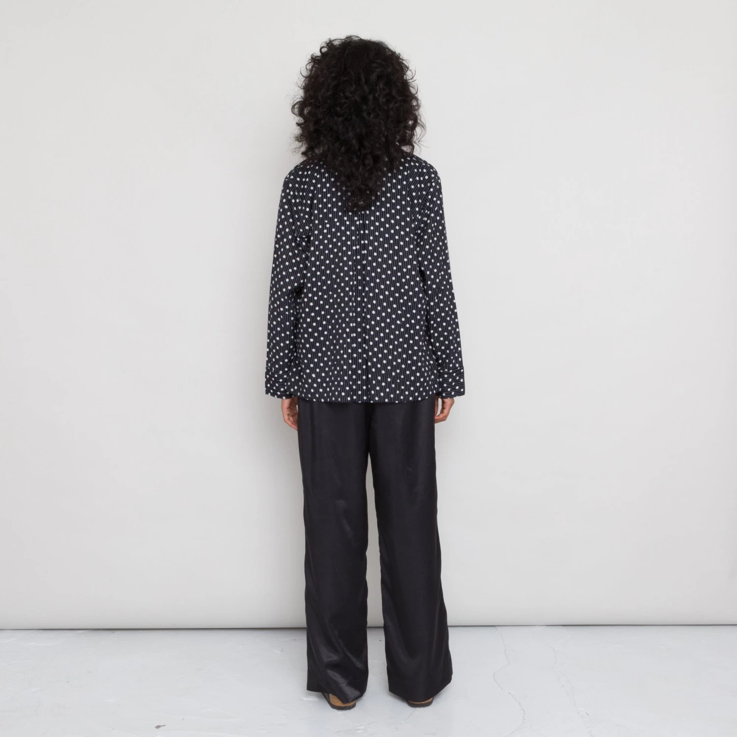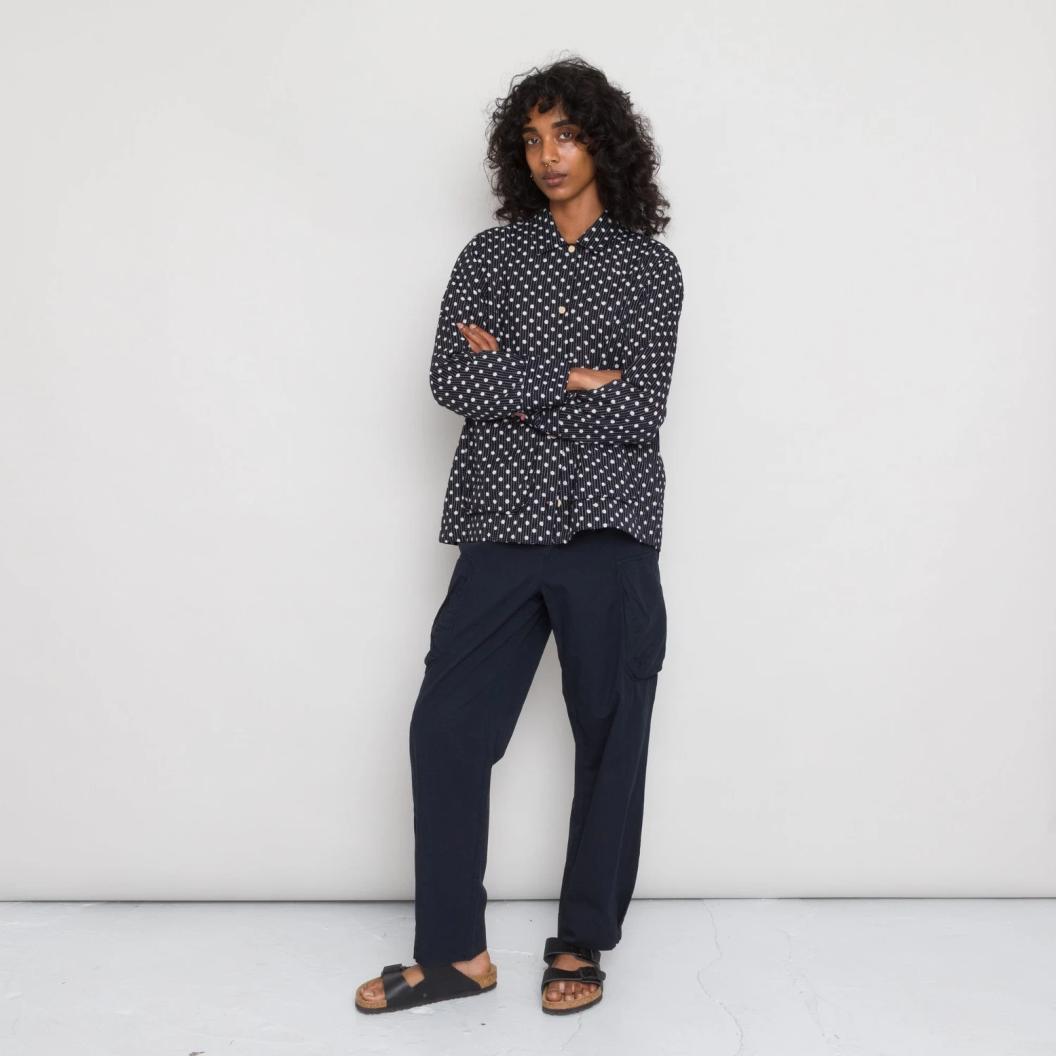 Relaxed boxy fit shirt block with a straight hem and large inverted box pleat on the back.