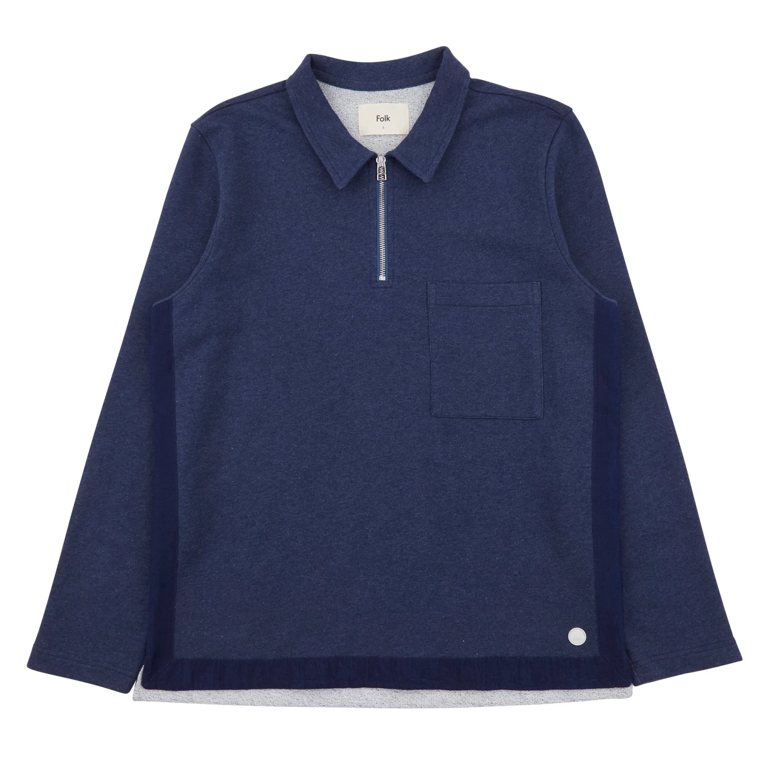 Tonal, cotton poplin panelling around hem, side seams and elbows.