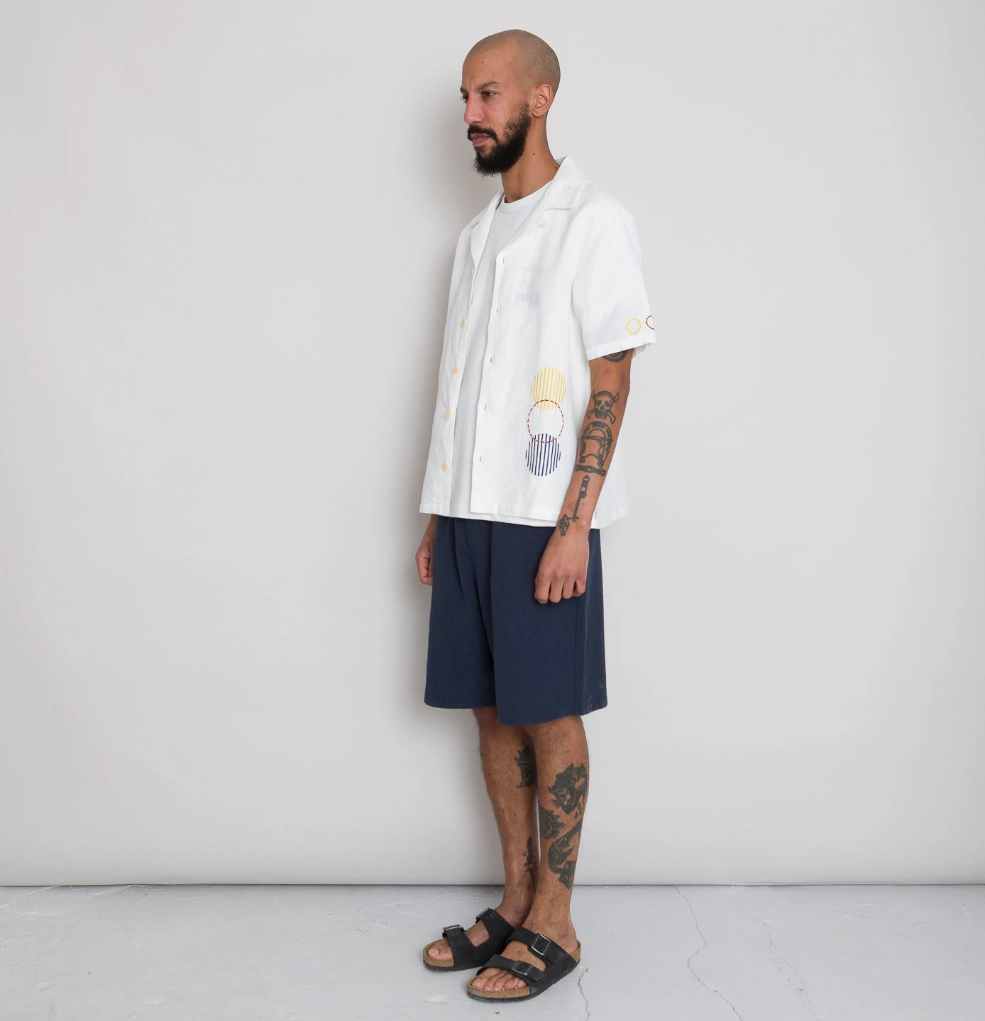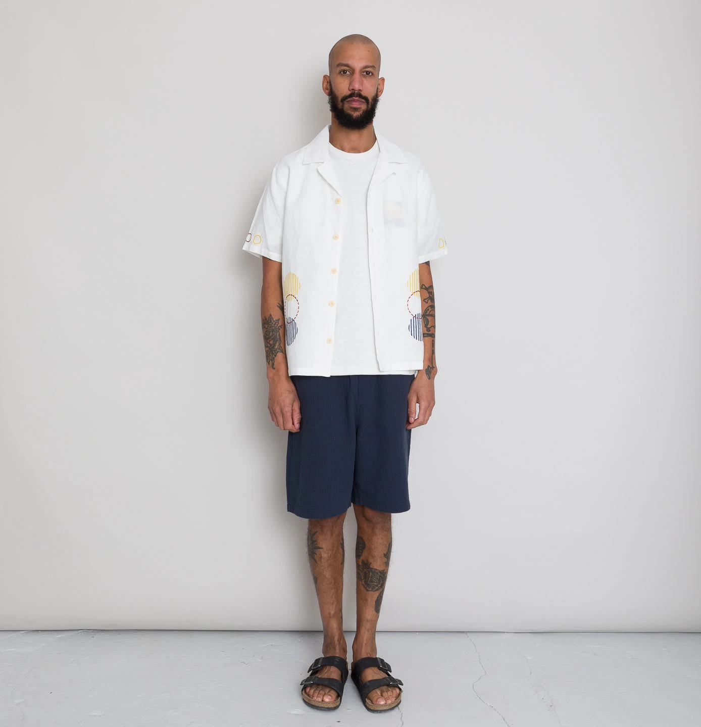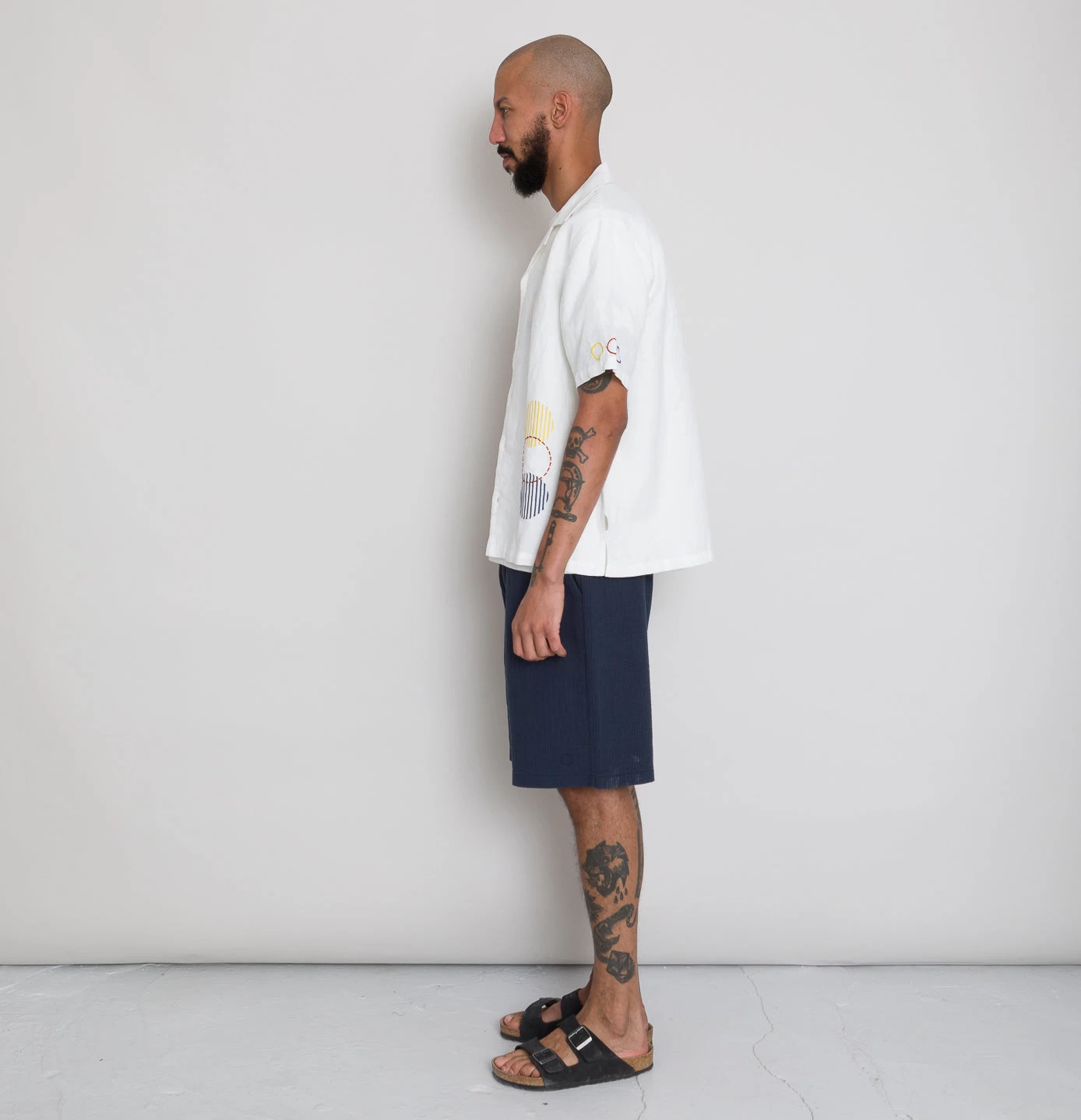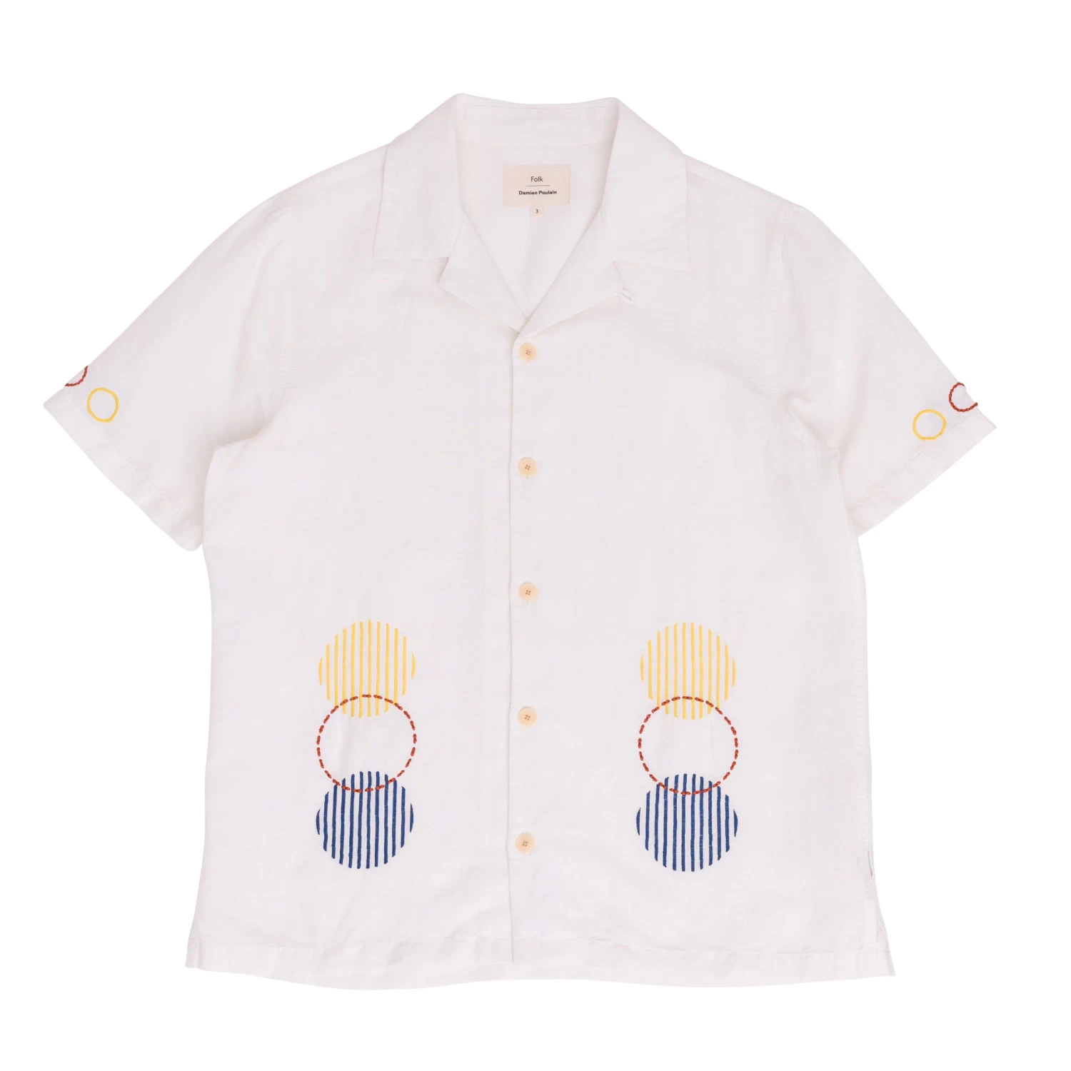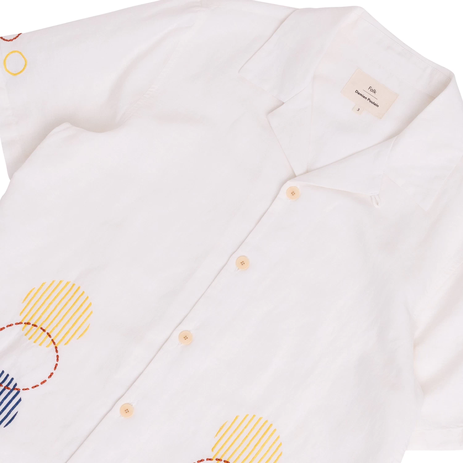 Embroidered motifs at front hem + sleeves; from artwork created for Folk by Damien Poulain.