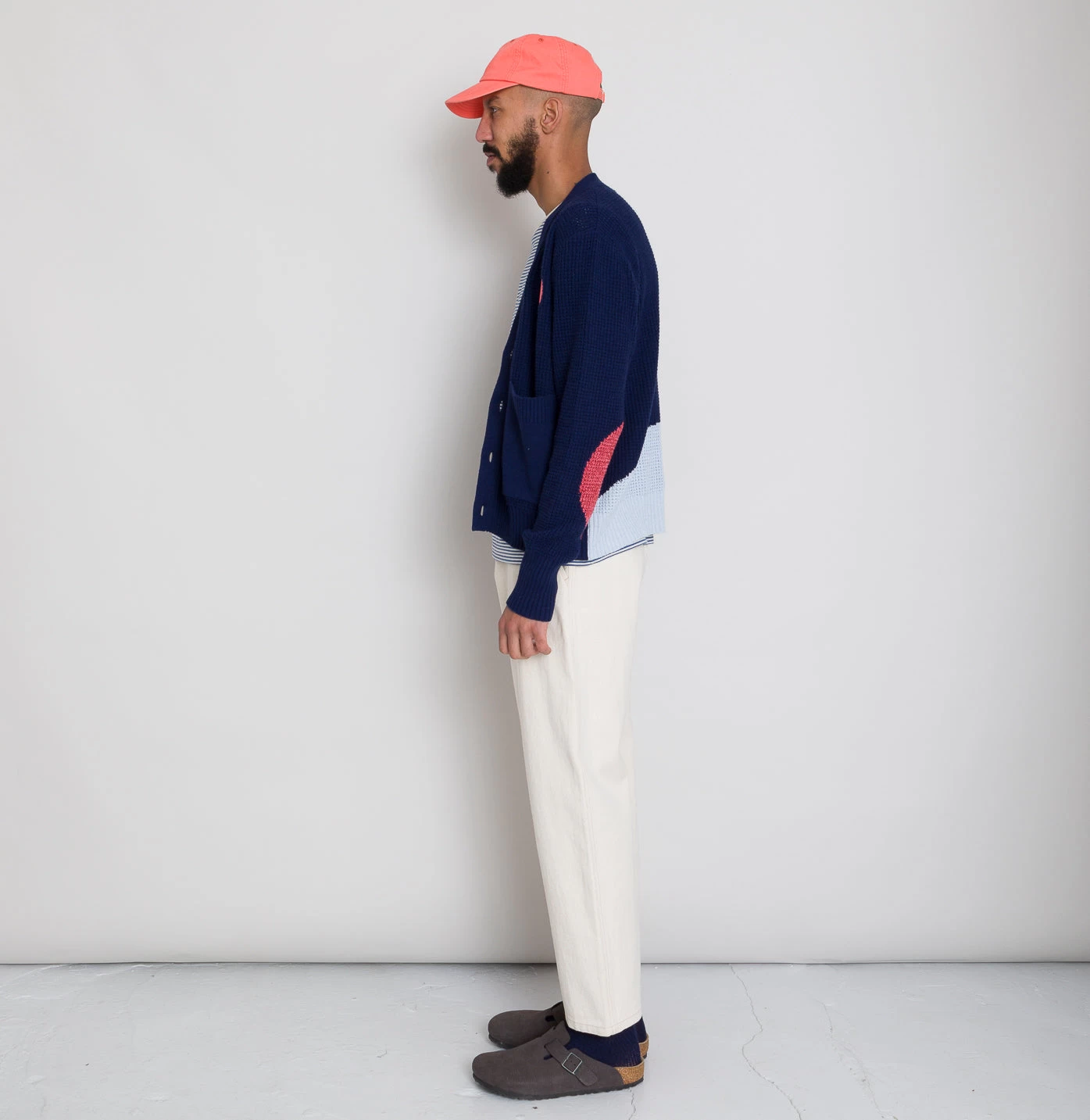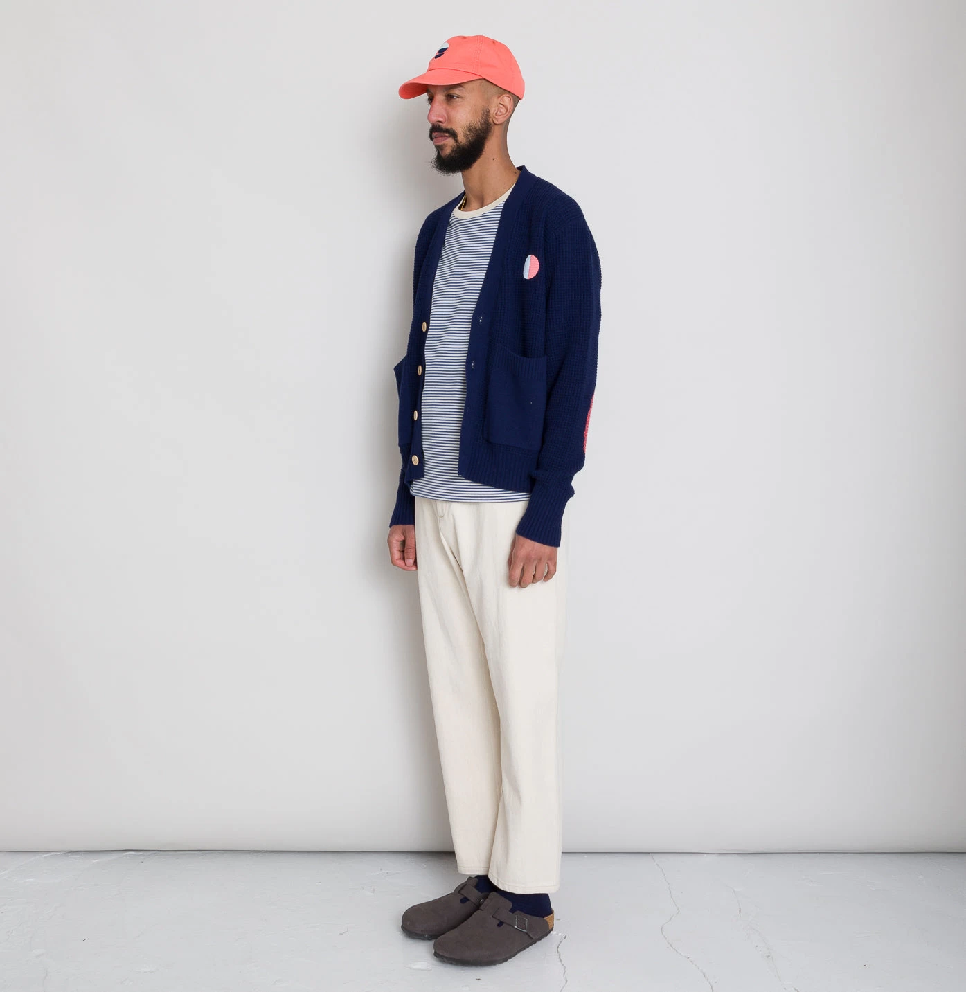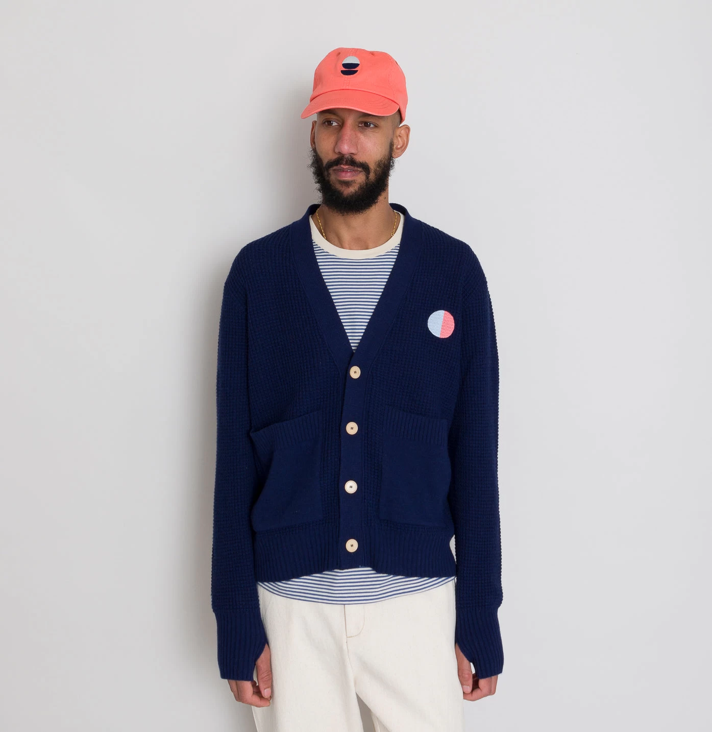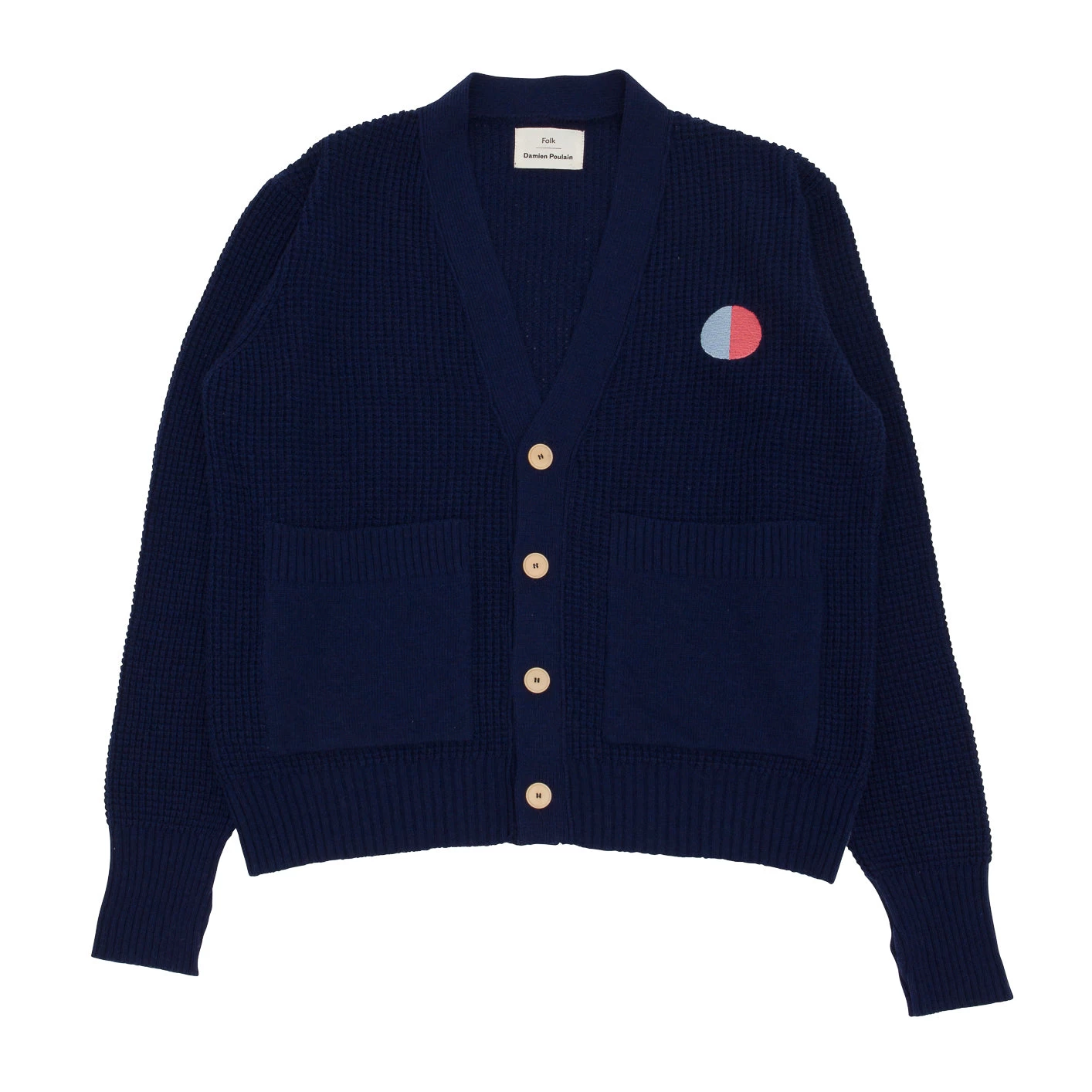 Wide fit cardigan with relaxed armhole and slightly shorter length.