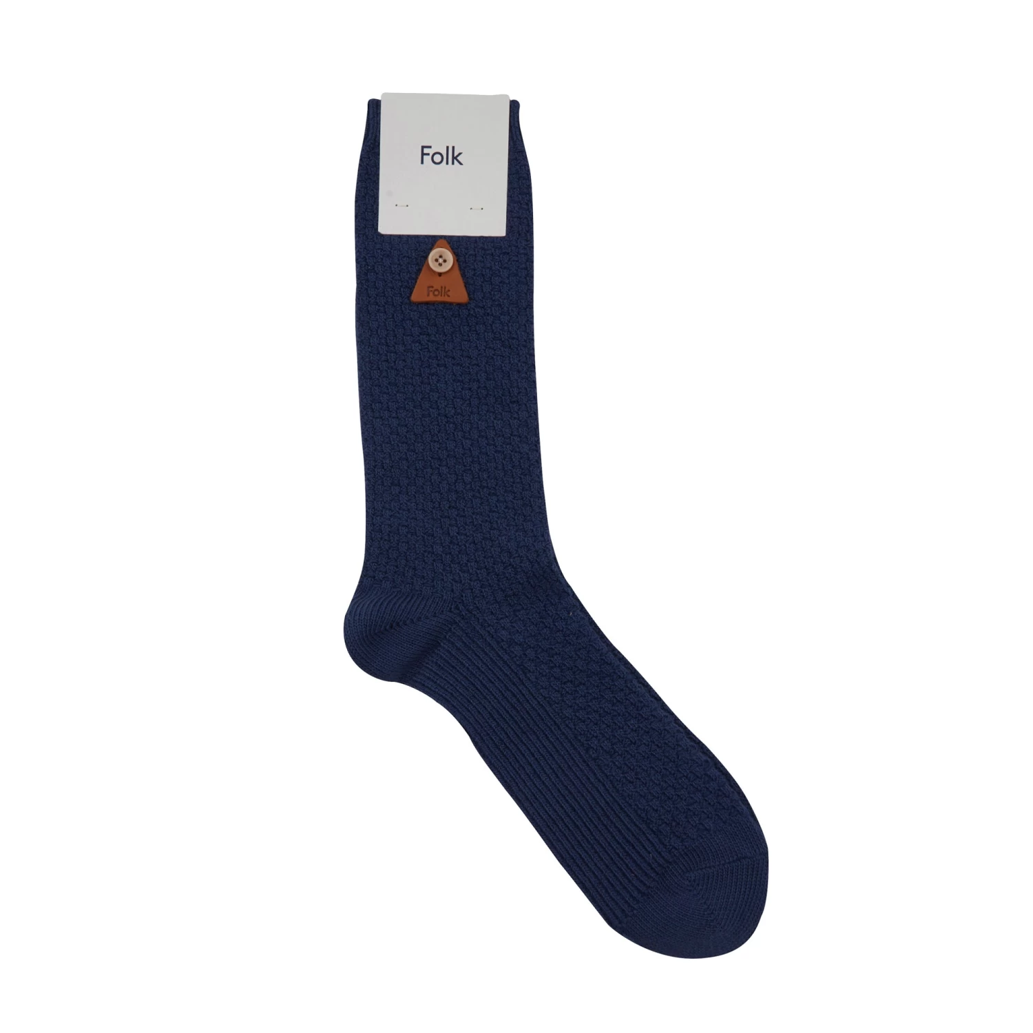 Finished with corozo button and faux leather triangular Folk tab.