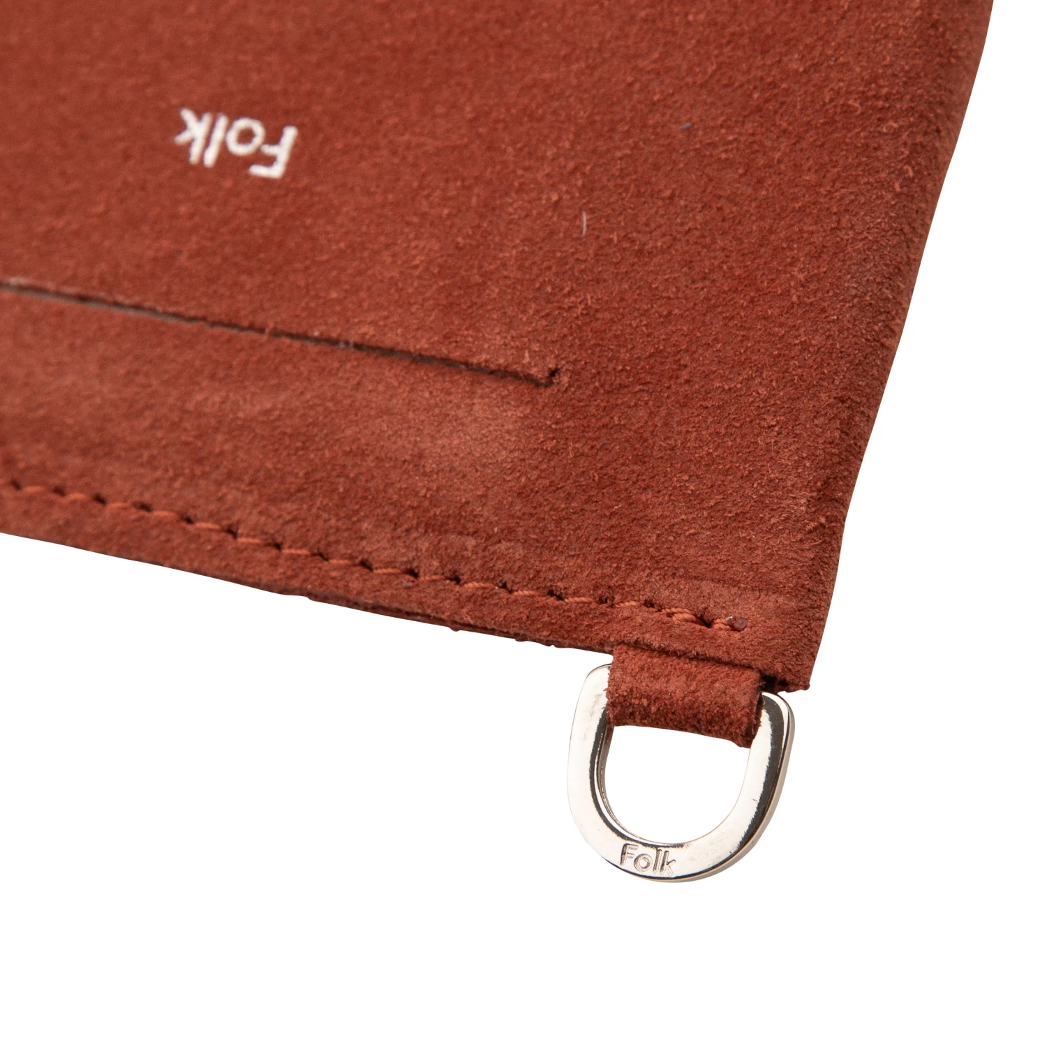 Metal D ring suitable to attach keyring with Folk branding